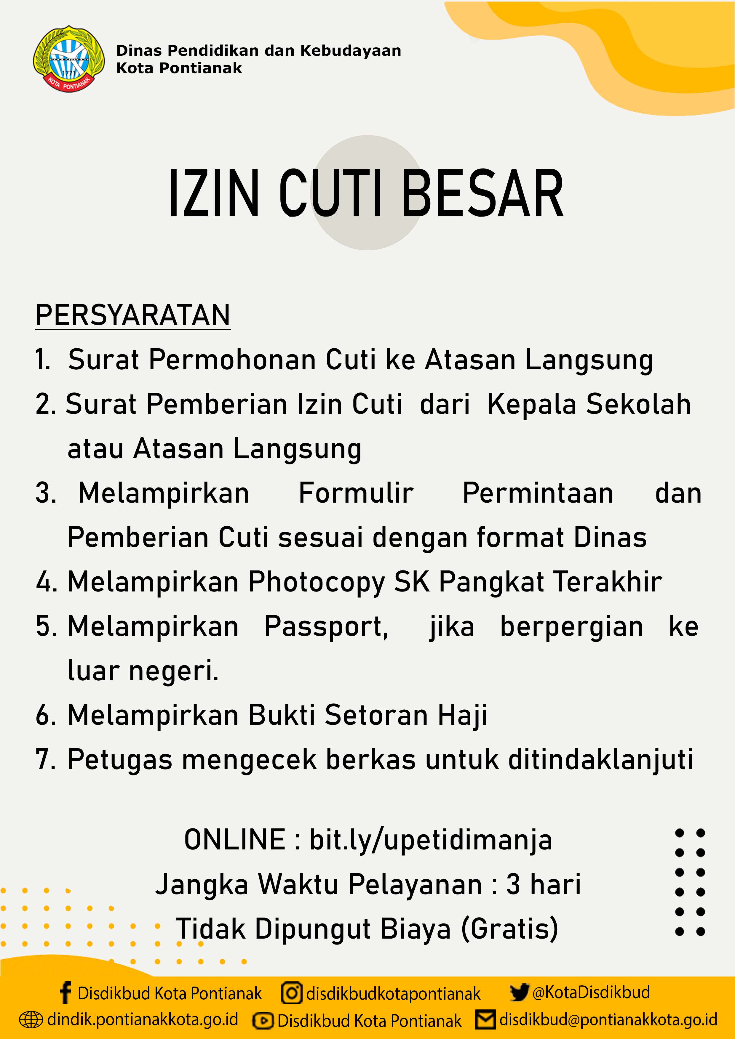 Segala Pelayanan di Dinas Pendidikan dan Kebudayaan Kota Pontianak GRATIS Pantau & Awasi Dana BOSP dan Laporkan Bila Ada Penyimpangan, Ketik BOSP (spasi)NPSN#isi laporan, atau Ketik BOSP(spasi)nama sekolah#kota#isi laporan, atau ketik BOSP(spasi)NIS#isi laporan, kirim ke 1771. Download JUKNIS BOSP segera