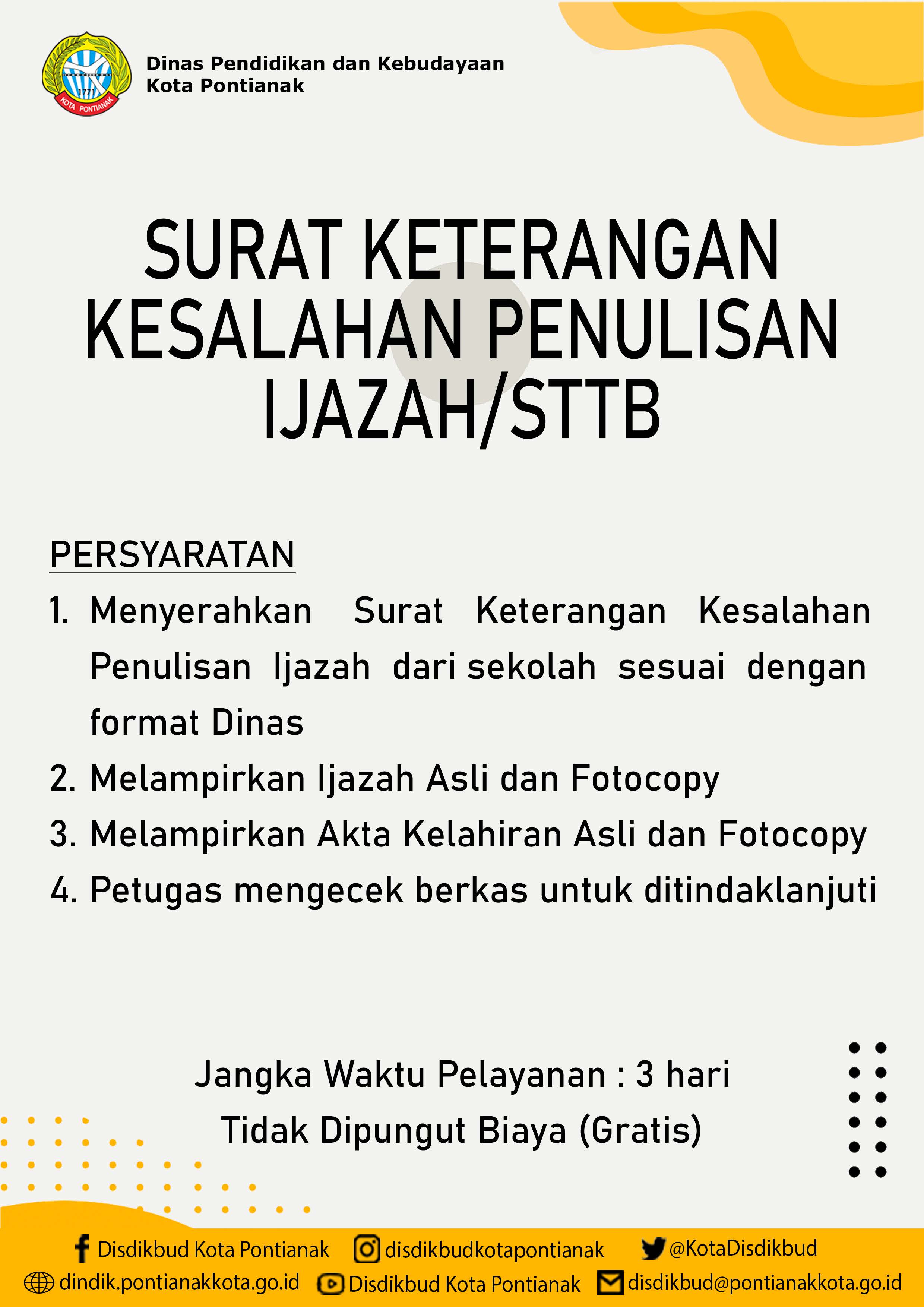 Segala Pelayanan di Dinas Pendidikan dan Kebudayaan Kota Pontianak GRATIS Pantau & Awasi Dana BOSP dan Laporkan Bila Ada Penyimpangan, Ketik BOSP (spasi)NPSN#isi laporan, atau Ketik BOSP(spasi)nama sekolah#kota#isi laporan, atau ketik BOSP(spasi)NIS#isi laporan, kirim ke 1771. Download JUKNIS BOSP segera