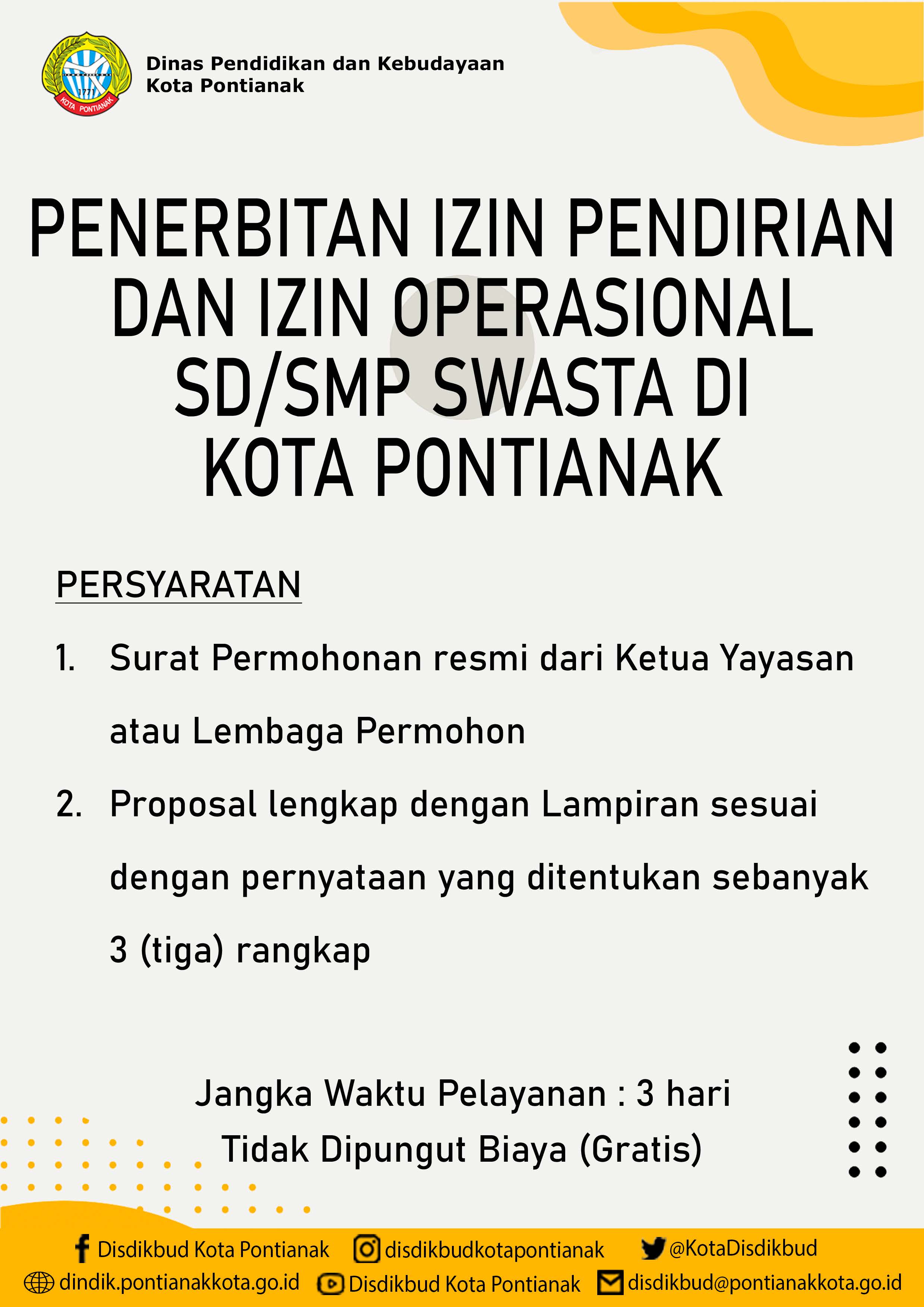 Penerbitan Izin Pendirian & Izin Operasional SD/SMP Swasta di Kota Pontianak